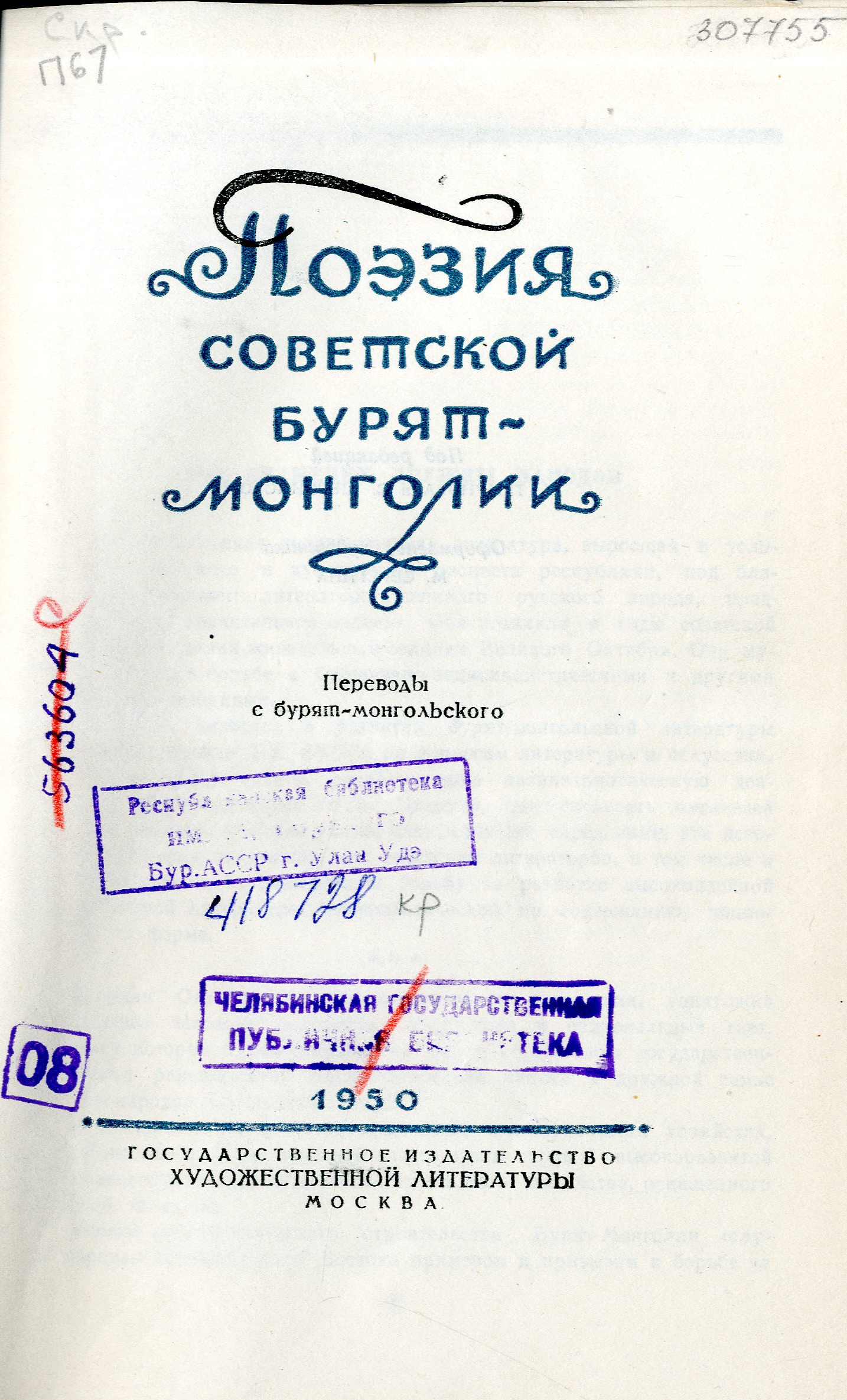 Дамбаев Д. Байкальские волны : стихи / Д. Дамбаев ; пер. Ю. Игумнов // Дамбаев Д. Тетива : стихи. – М.: Советская Россия, 1968 – С. 5-6