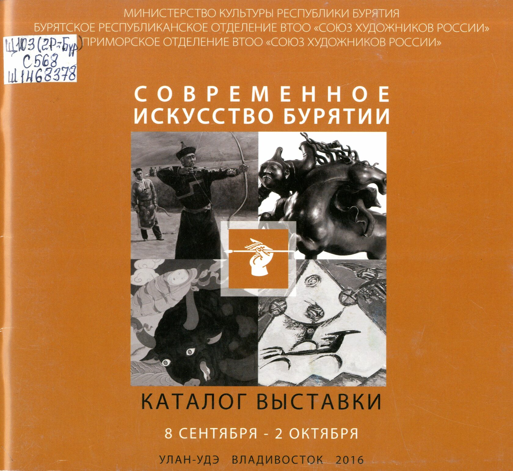 Современное искусство Бурятии : каталог выставки, 8 сентября - 2 октября, Улан-Удэ - Владивосток, 2016 / Министерство культуры Республики Бурятия, Бурятское республиканское отделение ВТОО "Союз художников России", Приморское отделение ВТОО "Союз художников России" ; [автор предисловия Л. Николаева]. - Улан-Удэ : [б. и.], [2016?]. - 35 с. : цв. ил.